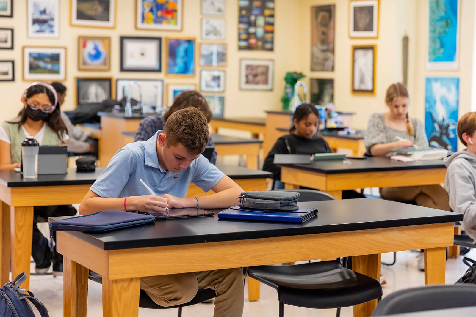 Our Middle School deepens students’ knowledge in core subjects and gradually builds their independence to prepare them for Upper School and beyond. The curriculum at Hampton Roads Academy’s Middle School offers a thorough academic and behavioral foundation, equipping students for future challenges inside and outside the classroom. With small class sizes and attentive teachers, our environment from Grades 5 through 8 is one in which every student feels supported and every educational journey is personalized.